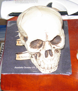 While at a halloween store, I spied this little plastic skull, and only a buck fifty with tax. Brought him home, cut the top of his head off and sanded the edges down so that they wouldn’t be sharp.