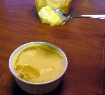 I had a bit of trouble with the Lemon Cream. I put a glass bowl over a simmering pot of water and stirred my mixture. However, the temperature seemed to do the Macarena on me. It would go up and then back down. I spent over a half hour stirring it and it just would not come up to 180F. I finally gave up and moved it to a saucepan over low heat and stirred it constantly and didn’t look away for a second. That did the trick, it hit temperature within another 2 minutes. I finished off the lemon cream and moved it to the fridge. A spoonful of this is tart-ally awesome. Think the initial taste of a Lemonhead candy.